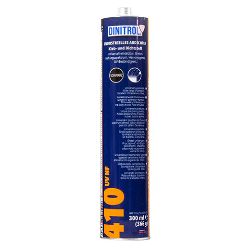 DINITROL 410 UV NF è utilizzato per incollare e sigillare in vari settori industriali, come la produzione di autobus, camion e case mobili. Il materiale aderisce bene a metalli non verniciati e verniciati, termoindurenti (plastiche rinforzate con fibra di vetro e PVC rigido), legno e vetro. È adatto per sigillare sovrapposizioni e giunti di dilatazione in aree visibili all'interno e all'esterno nella produzione di veicoli commerciali. Prima dell'applicazione su substrati complessi, si consiglia di eseguire un test di adesione.