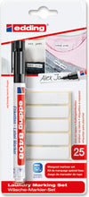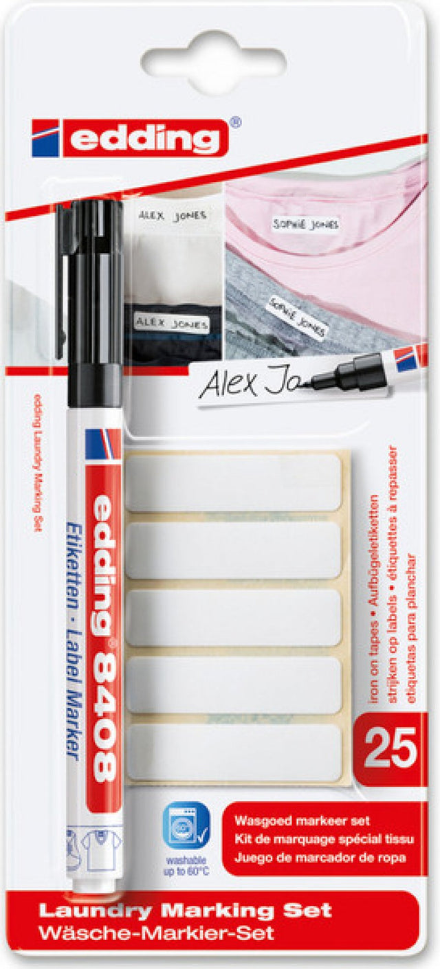 Marcatore permanente per scrittura fine e sottile ti aiuterà a contrassegnare i vestiti per l'asilo, la scuola o lo sport. Viene venduto in un set insieme a 25 etichette, che sono destinate ad essere stirate sui tessuti. Guarda il video per l'uso di questo set.