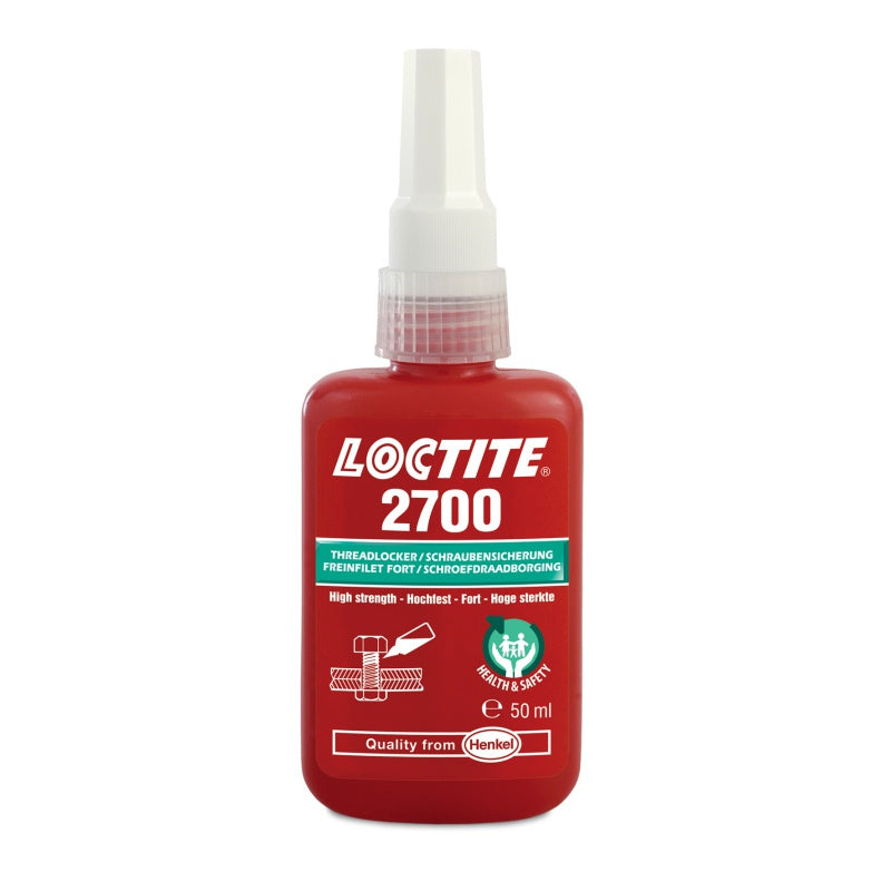 Loctite 2700 è un adesivo per filetti molto potente, utile per garantire una giunzione filettata contro l'allentamento spontaneo. I filetti si allentano spontaneamente soprattutto a causa di vibrazioni e urti, il che può essere pericoloso in molti casi. L'adesivo per filetti ad alta resistenza Loctite 2700 previene l'allentamento spontaneo. Inoltre, è altamente resistente al calore fino a 150 °C e resiste anche a sostanze chimiche. Dopo l'applicazione, raggiunge una resistenza alla manipolazione già dopo 5 minuti, indurendosi completamente in seguito. Si consiglia di utilizzare Loctite 2700 solo dove non è richiesta una giunzione smontabile.
