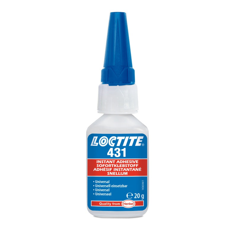 Loctite 431 è una colla istantanea per uso universale. È particolarmente adatta per superfici acide, che è la sua caratteristica speciale rispetto ad altre colle. Ideale per materiali cromati o zincati.