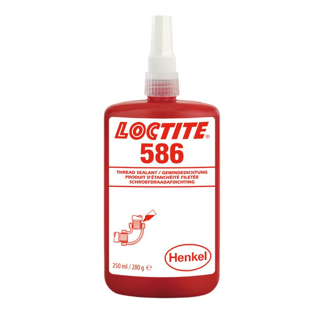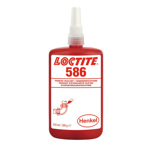 La guarnizione filettata Loctite 586 è una guarnizione liquida adatta per l'uso su ottone e altri metalli. Non si consiglia di utilizzarla su plastica e simili. Viene utilizzata per sigillare i filetti di tubi e raccordi, dove indurisce e sigilla la giunzione nella fessura del filetto tra due superfici metalliche. Loctite 586 viene utilizzato principalmente come guarnizione filettata contro acqua, olio e altri comuni fluidi organici. Dopo l'indurimento, sigilla la giunzione e la protegge da infiltrazioni o allentamenti, che spesso si verificano a causa di urti e vibrazioni - Loctite 586 è altamente resistente a questi. La guarnizione liquida Loctite 586 può essere utilizzata fino a una temperatura di 150 °C, oltre la quale non resiste più e subisce danni irreversibili.