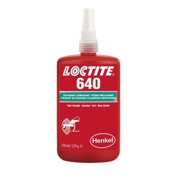 Loctite 640 è un fissatore, utilizzato principalmente per il collegamento di componenti cilindrici accoppiati. È destinato principalmente a fissaggi di lunga durata, sia a causa delle dimensioni dei componenti fissati, sia per la complessità della costruzione. Proprio per questo, Loctite 640 ha un tempo di indurimento prolungato. Il fissatore si indurisce nella fessura tra due superfici metalliche senza accesso all'aria. Dopo l'applicazione e l'indurimento, garantisce la struttura contro il rilascio indesiderato. Loctite 640 è inoltre un fissatore altamente resistente alle vibrazioni e agli urti. Tra gli usi tipici di Loctite 640 ci sono il fissaggio di chiavette e perni, componenti cilindrici accoppiati, cuscinetti, manicotti e simili.