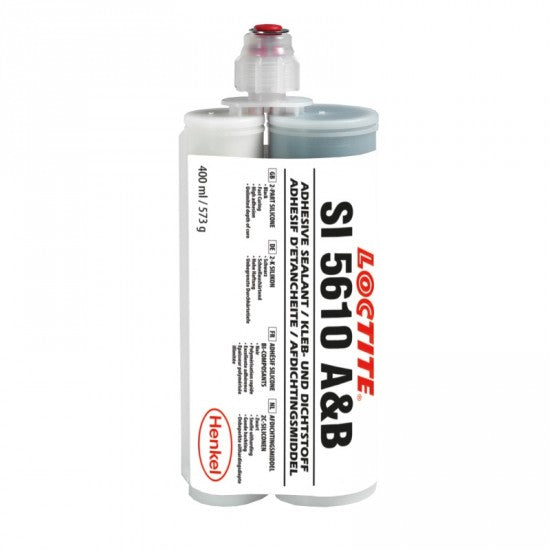 Silicone bicomponente Loctite SI 5610 caratterizzato da rapida polimerizzazione. È particolarmente adatto per materiali come vetro, ceramica vetrosa Ceran e metalli. Dopo l'indurimento ha un'ottima resistenza e resistenza fino a temperature di 180 °C.