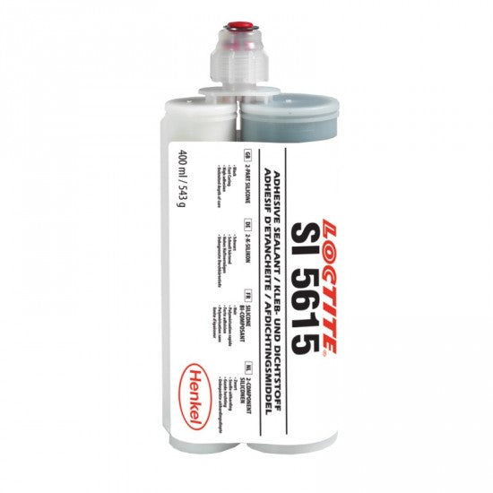 Silicone bicomponente Loctite SI 5615 che indurisce molto rapidamente. Si distingue per una grande adesione a vetro, ceramica vetrosa Ceran e vari metalli. Resiste anche a temperature elevate oltre 180 °C a breve termine.