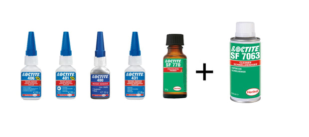 Unico set universale di collanti istantanei Loctite di vari tipi e destinazioni. La confezione include anche un detergente per superfici per la preparazione prima dell'incollaggio. Un set perfetto per ogni casa.