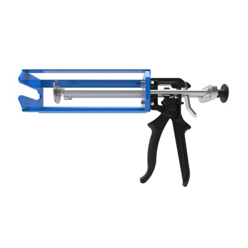 Pistola manuale per cartucce da 400 ml o 490 ml, con possibilità di regolare il rapporto di miscelazione (1:1, 2:1, 4:1, 10:1) e rapporto di trasmissione speciale 18:1.