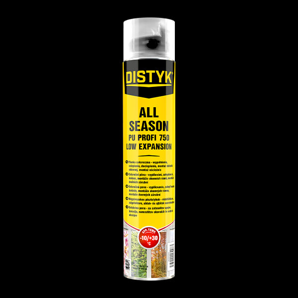 Schiuma pistolabile per tutto l'anno per sigillare giunti, montaggio di telai per porte e finestre, riempimento di passaggi per tubi e cavi elettrici. Ottima adesione a tutti i materiali da costruzione – calcestruzzo, pietra, intonaco, muratura, legno, polistirene, ecc. Isolamento termico di spazi sottotetto, ecc.