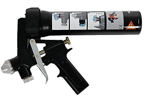 Sika SprayGun è una pistola a spruzzo pneumatica per l'applicazione di sigillanti - poliuretano, polimero ms, ibrido. Progettata per materiali spruzzabili SikaFlex 529AT. È progettata per essere utilizzata come sigillante flessibile a spruzzo per giunti sovrapposti, riparazioni di collisioni e applicazioni di carrozzeria.