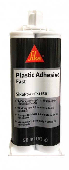 SikaPower 2950 è un adesivo poliuretanico bicomponente con eccellente adesione al substrato. È destinato all'unione di plastiche, in particolare per paraurti automobilistici e altri elementi in plastica (riparazioni di parti in plastica, come rattoppi, incollaggio e riempimento di cavità)