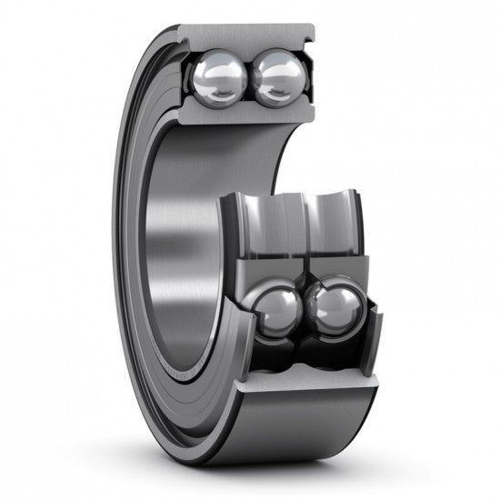 SKF Explorer 3204 A-2Z - cuscinetto a sfera a doppia fila non smontabile con contatto angolare, con una costruzione interna ottimizzata senza scanalature di riempimento, gabbia in acciaio guidata da due file di sfere, guarnizione metallica senza contatto su entrambi i lati e con gioco assiale normale. La lamiera di copertura si adatta al anello interno liscio. Il cuscinetto è progettato per un alloggiamento con anello interno rotante ed è riempito con un lubrificante plastico di alta qualità di classe 3 secondo la scala NLGI con un intervallo di temperatura da -30°C a +120°C per tutta la vita del cuscinetto. Se l'anello esterno ruota, può verificarsi una perdita di lubrificante a velocità elevate. Il cuscinetto ha un angolo di contatto di 30° e i corpi volventi sono disposti come in una coppia combinata di cuscinetti a sfera a una fila con contatto angolare in configurazione O, cioè schiena contro schiena, e può trasmettere carichi radiali e assiali bidirezionali. I cuscinetti SKF di classe Explorer rappresentano una nuova classe di cuscinetti volventi ad alte prestazioni, offrono un notevole aumento dei principali parametri operativi, come rumore, vibrazioni, sviluppo di calore, affidabilità operativa, capacità di carico dinamico e sono prodotti con una maggiore precisione rispetto ai normali. La precisione delle dimensioni corrisponde alla classe di precisione P6.